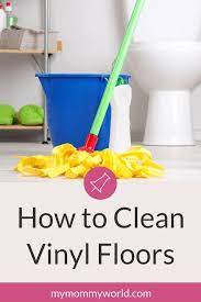 How to clean vinyl.flooring. Like with all good things in life moderation is key. For regular cleaning add 1 to 2 cups of white vinegar in one gallon of hot water. For routine cleaning vinyl floors can be swabbed with plain water and a damp mop or with a product made for vinyl and other hard surfaces.