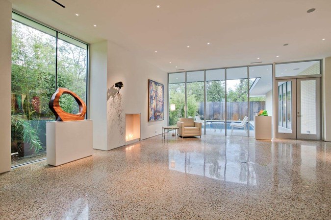 Polishing the exposed concrete eliminates the energy and material consumed by applying a floor covering.